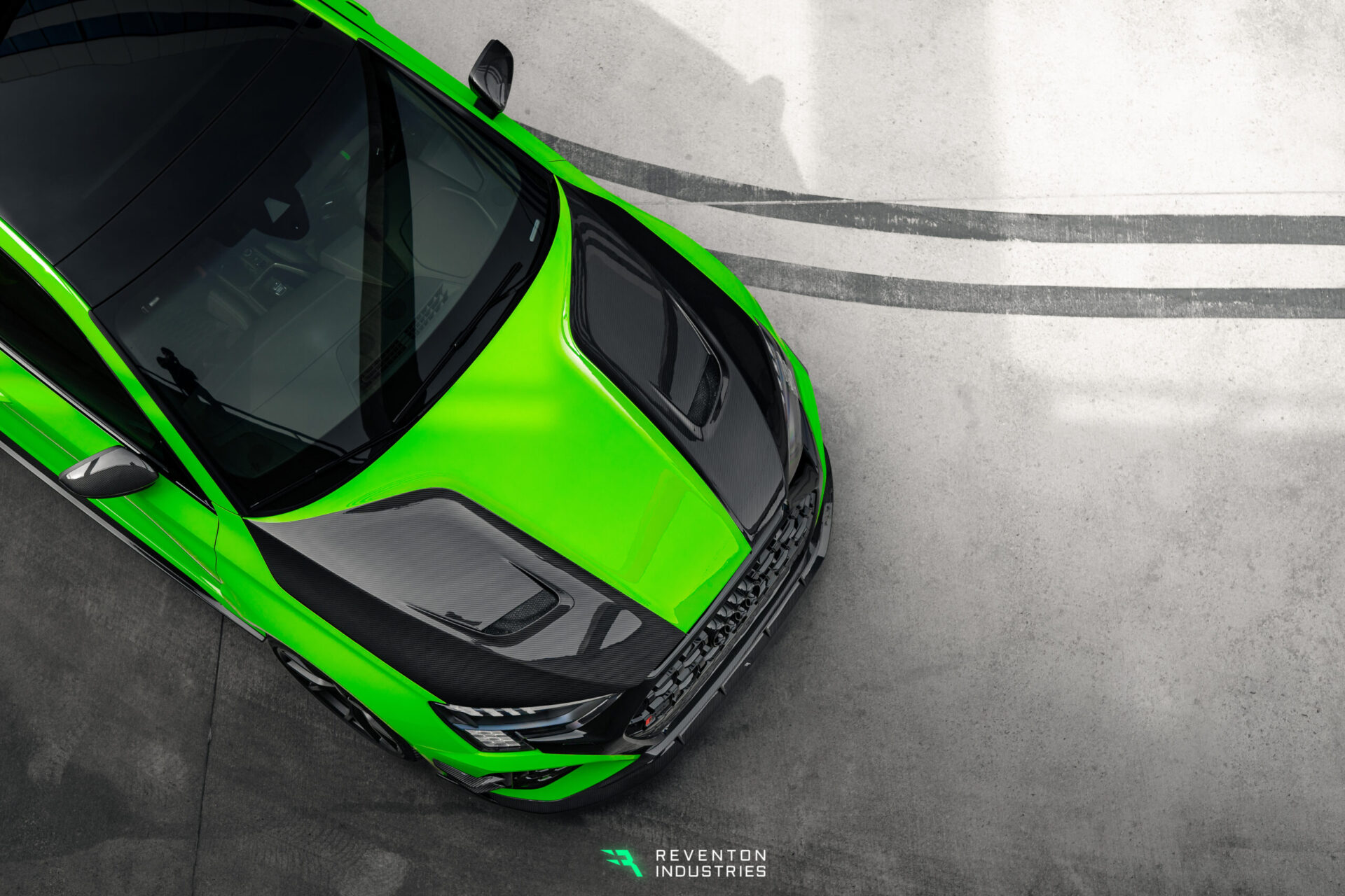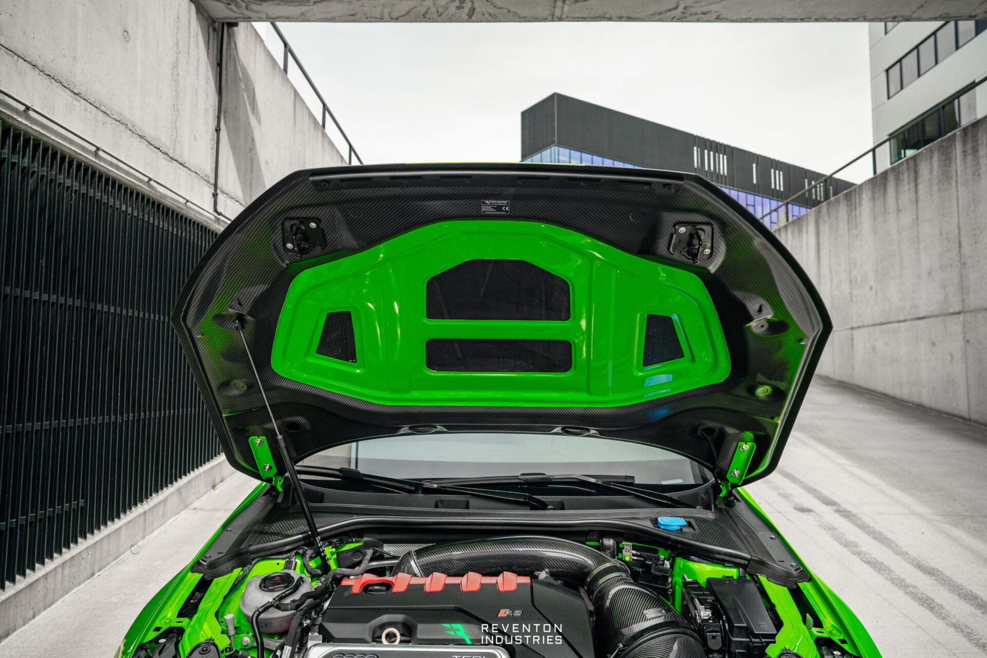 The Trophy carbon engine cover with air intakes for the RS3 is made of high-quality prepreq carbon fiber composite material and therefore has several advantages over conventional metal covers, both in terms of material and design. The low weight of the mask is particularly noticeable. Air outlets that extend on the side surfaces of the cover ensure better air circulation in the engine compartment. At higher speeds, the suction force increases, pulling hot air out of the engine compartment. For particularly efficient vehicles that often have to deal with high heat generation, this cooling option is extremely effective
