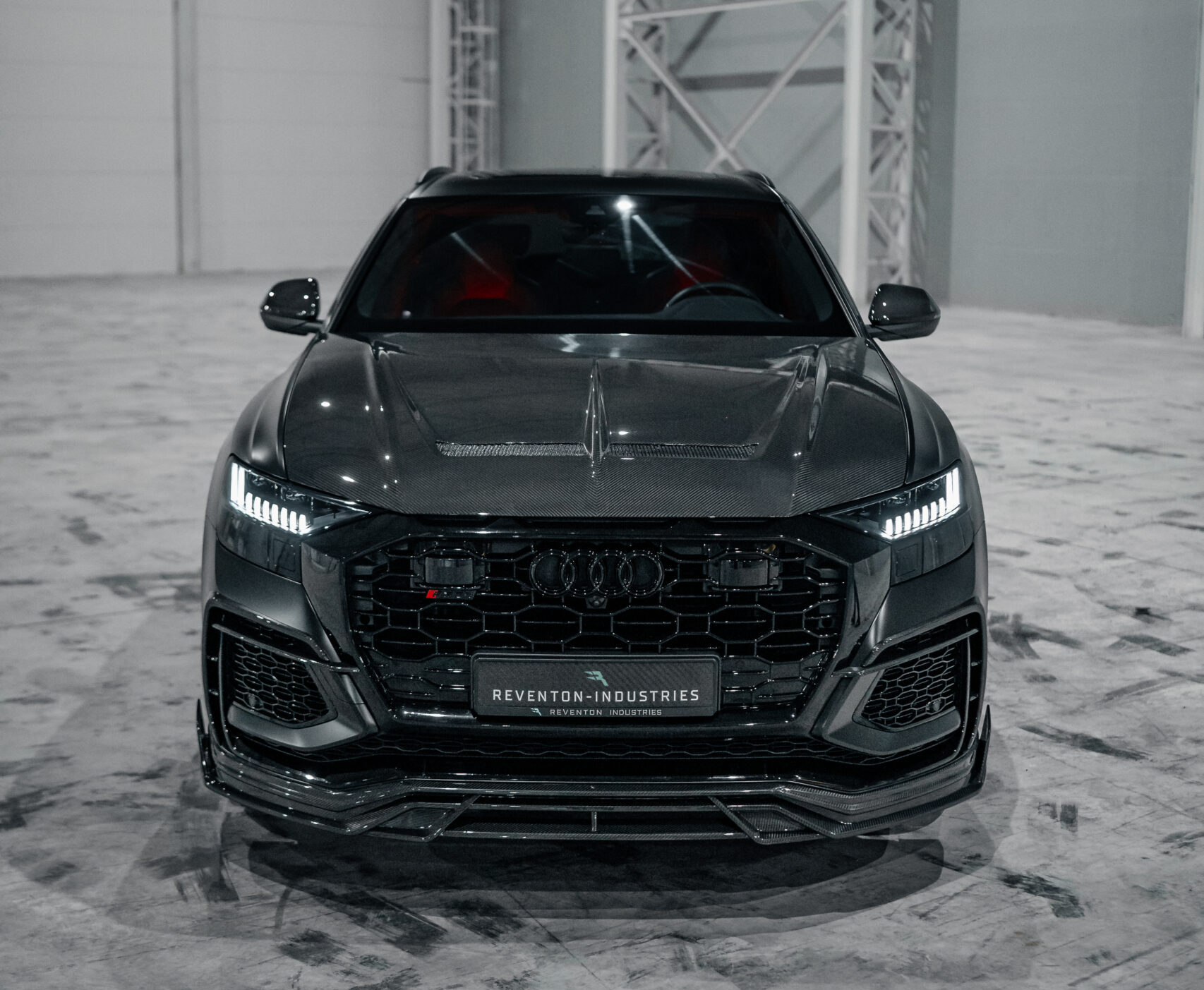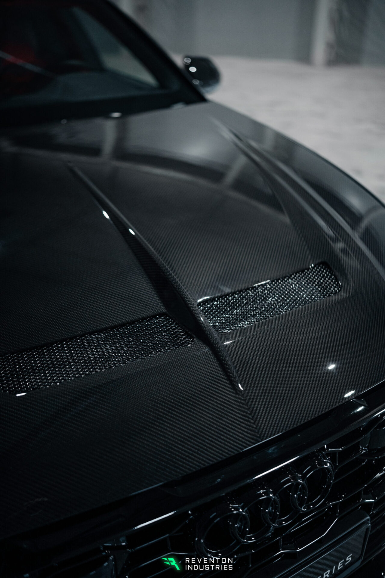 Karbonowa pokrywa silnika z wlotami powietrza Trophy do RSQ8 jest wykonana z wysokiej jakości materiału kompozytowego z włókna węglowego prepreq i dlatego ma kilka zalet w porównaniu z konwencjonalnymi pokrywami metalowymi, zarówno pod względem materiału, jak i konstrukcji. Szczególnie zauważalna jest niska waga maski. Wyloty powietrza które rozciągają się na środkowej oraz bocznej powierzchni pokrywy, zapewniają lepszą cyrkulację powietrza w komorze silnika. Przy wyższych prędkościach zwiększa się siła ssania, co powoduje wyciąganie gorącego powietrza z komory silnika. W przypadku szczególnie wydajnych pojazdów, które często muszą zmagać się z dużym wydzielaniem ciepła, ta możliwość chłodzenia jest niezwykle skuteczna