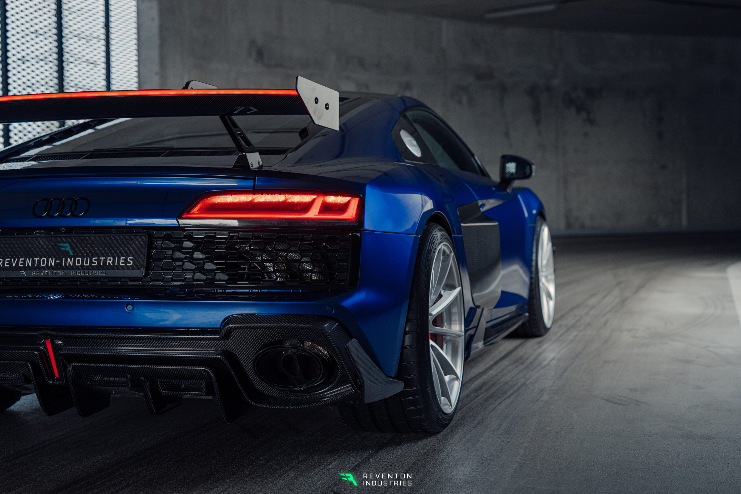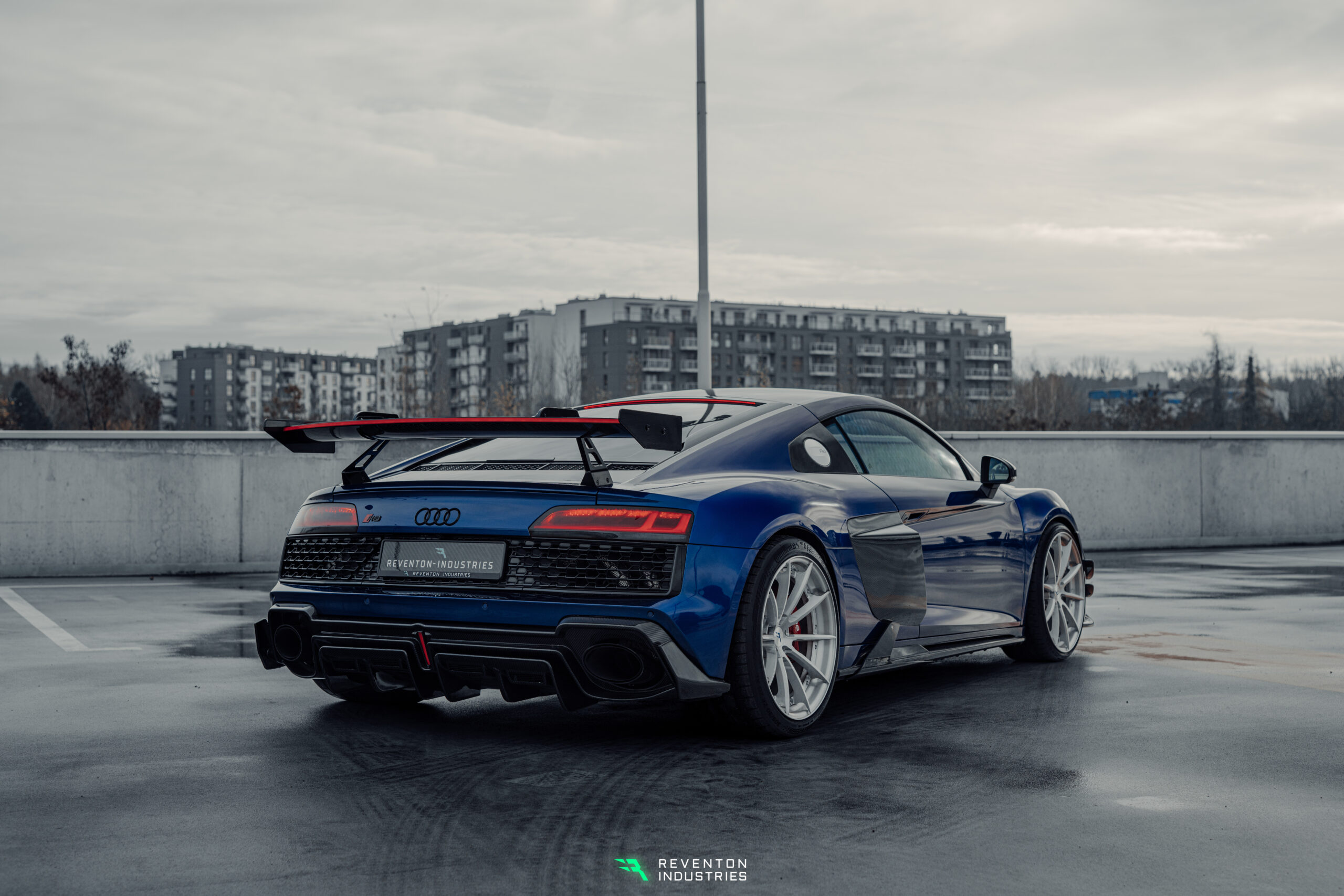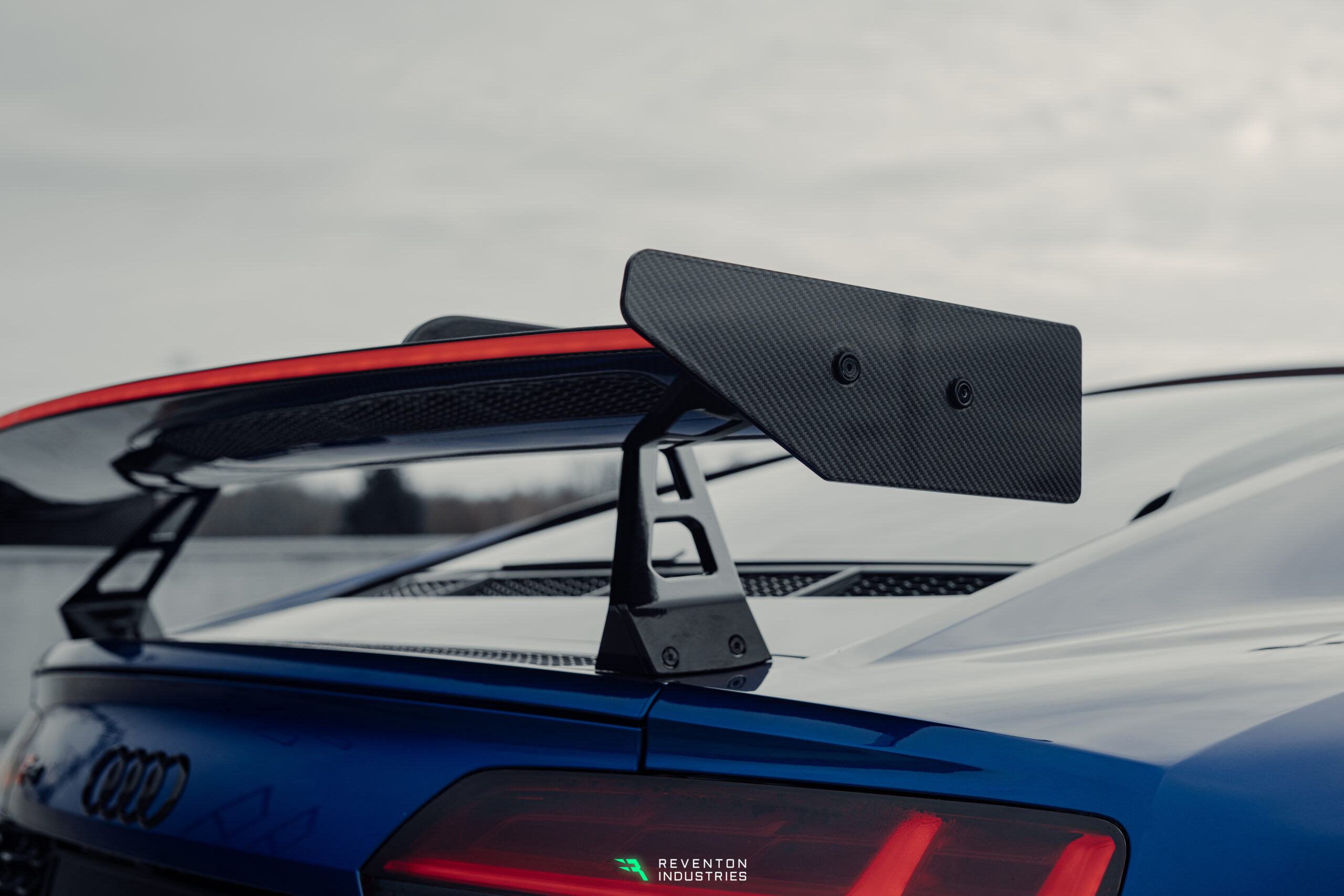 Cyber Wing LED do Audi R8 – pakiet Trophy to zaawansowany element stylistyczny, który łączy futurystyczny design z precyzją wykonania klasy premium. Skrzydło stanowi kluczowy element pakietu Trophy, nadając Audi R8 wyrazisty i bezkompromisowy charakter. Konstrukcja oparta jest na aluminiowych ramionach frezowanych w technologii CNC, które następnie są lakierowane proszkowo dla maksymalnej trwałości i estetyki. Ramiona zostały zaprojektowane jako łączone elementy, co pozwala na całkowite ukrycie przewodów zasilających oświetlenie LED, zachowując czystą i techniczną formę bez widocznego okablowania. Zintegrowane LED podkreślają nowoczesny charakter Cyber Winga i doskonale współgrają z pozostałymi elementami pakietu Trophy, tworząc spójną, agresywną linię nadwozia.